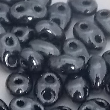 Perles de rocaille Twin black hématite Preciosa 2.5*5mm vendues par sachet de 25 grammes.